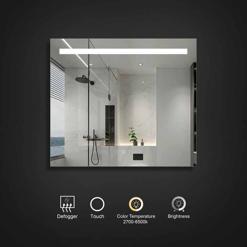 Naast de temperatuur is ook de intensiteit van het licht, de hoeveelheid Lumen, traploos instelbaar. De spiegel heeft een