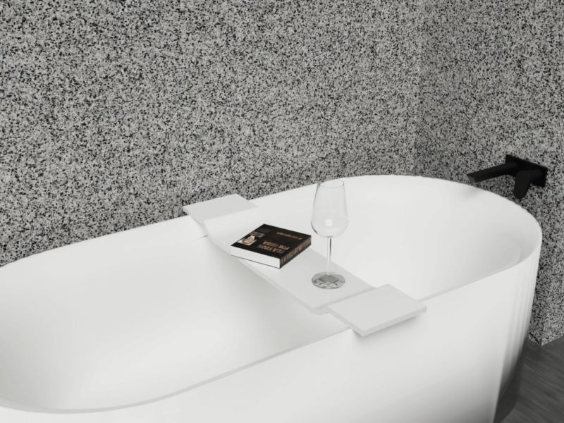 Deze badkamerkruk gemaakt van solid surface is een goede keus